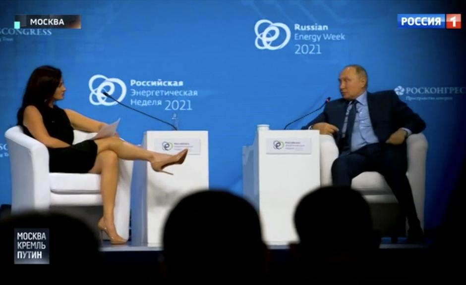 Ruski mediji tvrde da je moderatorica na panelu Ruskog energetskog tjedna u Moskvi poslužila kao oružje za potkopavanje Putina koje je upotrebljeno kao odgovor na sličnu taktiku koju su Rusi ranije upotrijebili protiv Donalda Trumpa kada su doveli fizički privlačnu prevoditeljicu.