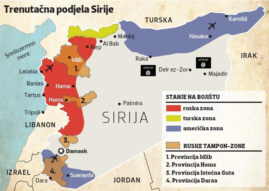 Sirijska vojska izvijestila je kako je uoči početka pregovora u Kazahstanu privremeno prekinula borbe na jugu zemlje. Fokus je razgovora, koji okupljaju i predstavnike triju država koje sponzoriraju pregovore, Rusije, Turske i Irana, na uspostavi sigurnih zona te se očekuje nastavak utvrđivanja četiriju sigurnih zona koje su dogovorene još u svibnju i koje će nadzirati isključivo ruska vojska. Prema ranijem dogovoru, vladine snage i pobunjenici trebali bi okončati neprijateljstva u četiri zone u kojima živi više od 2,5 milijuna ljudi, što bi trebao biti i preduvjet za okončanje rata u toj zemlji. Assad i Putin već slave pobjedu u sirijskom ratu koji je, čini se, došao do samoga kraja. Naime, nakon što će u te četiri zone, u provinciji Idliba, Homsa, te oko Damaska u istočnoj Guti, kao i na jugu Sirije u provinciji Daraa, uz granicu s Jordanom, na snagu stupiti primirje, počet će pregovori o predaji oružja i mirnoj reintegraciji područja pod kontrolom pobunjenika. Dogovoreno je da Moskva razmjesti nove kontingente svojih vojnika koji će doći uz Rusije kako bi patrolirali zonama demilitarizacije u Siriji u roku od dva do tri tjedna nakon finaliziranja sporazuma s Turskom i Iranom. Rusija i Iran, koji podržavaju vladu sirijskog predsjednika Bashara al-Assada, i Turska, koja podržava neke od pobunjenika, ali je i ruski saveznik, usuglasili su se o stvaranju četiri demilitarizirane zone u Siriji. Ono što najviše iznenađuje, taj će sporazum obuhvatiti i provinciju Idlib na sjeverozapadu Sirije, koji je postalo uporište džihadista. Međutim, Nusra Fronta i ostale islamističke frakcije koje se danas nalaze u Idlibu pod utjecajem su Turske i Katara, koji u zadnje vrijeme imaju jako loše odnose sa SAD-om i bivšim saveznikom i glavnim financijašem džihadista, Saudijskom Arabijom. Analitičari smatraju da je pristanak džihadista u Idlibu na mirnu integraciju veliki preokret u sirijskom ratu.