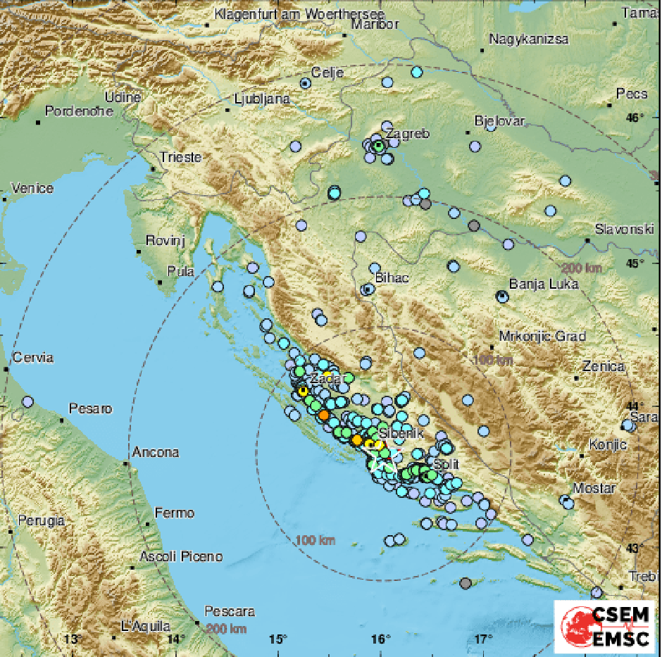 Epicentar potresa bio je na dubini od deset kilometara i 13 kilometara jugoistočno od Šibenika, javlja EMSC. Osjetio se i na splitskom te zadarskom području. Mnogi korisnici iz Šibenika, Vodica, Trogira, Splita, Zadra, Knina, Sinja, Brača... pišu na stranicama EMSC-a kako su osjetili potres.