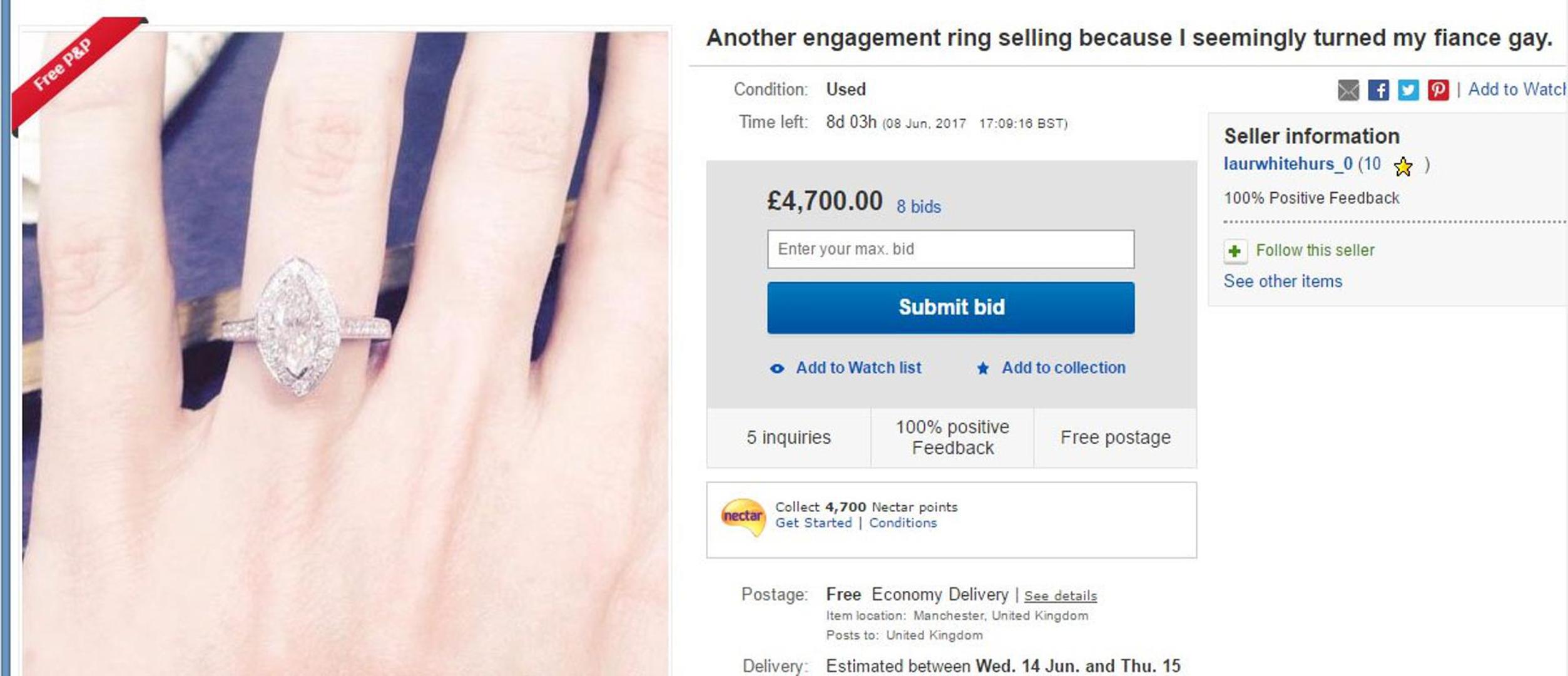 Laura (27) je objavila na eBayu da prodaje zaručnički prsten, a uz oglas je objasnila i zbog čega to radi