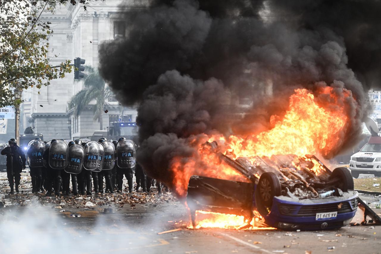 'Bojno polje', tako su neki argentinski mediji opisali situaciju koja se odvijala u Buenos Airesu gdje su se prosvjednici sukobili s policijom. Ljudi su se okupili ispred Kongresa prije nego su zastupnici Senatu dali početno odobrenje za reforme koje smanjuju proračun. Prosvjednici koje će mjere povrijediti milijune Argentinaca.