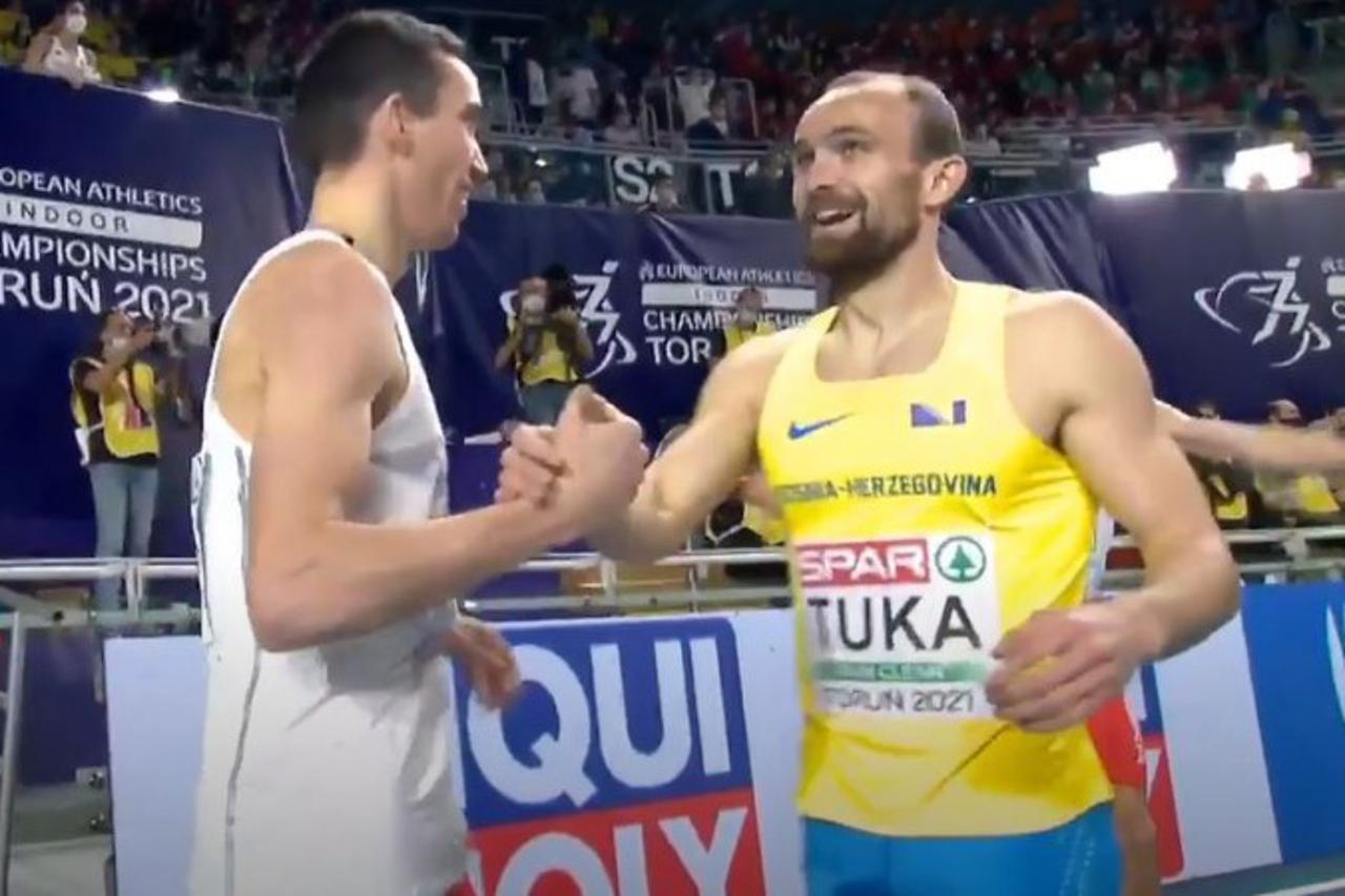 prvo mjesto s vremenom 1:49.58 Tuka u polufinalu utrke na 800 metara na dvoranskom EP-u Tuka je u prvoj kvalifikaciojskoj grupi osvojio prvo mjesto s vremenom 1:49.58, te bez većih problema izborio učešće u polufinalu koje je na rasporedu u subotu.
