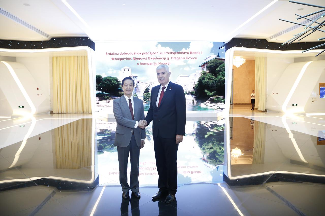 Dragan Čović u Kini Otvaraju se vrata za veća i nova ulaganja NR Kine u BiH Poslovanje Čoviću kao dobrodošlicu u Huawei napravili displej na kojem je bila slika Starog mosta i poruka