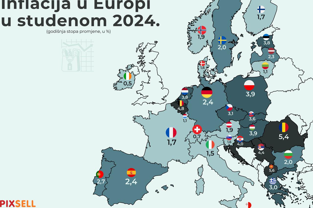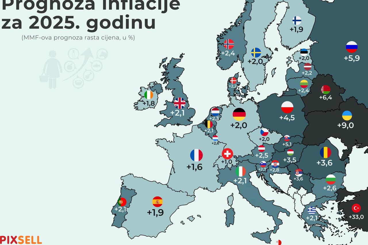 Očekivana stopa inflacije u Njemačkoj 2 posto, Hrvatskoj 2,8, a u BiH 3,7 posto