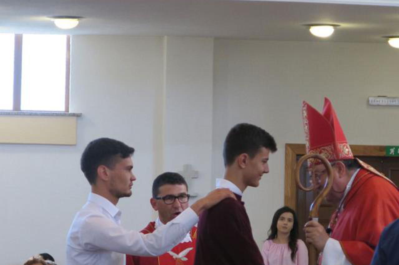 svečano misno slavlje Podijeljeni sakramenti prve pričesti i potvrde u župi Kandija kod Bugojna Sakrament krizme kardinal je podjelio za deset kandidata te je četvero djece primilo prvu pričest