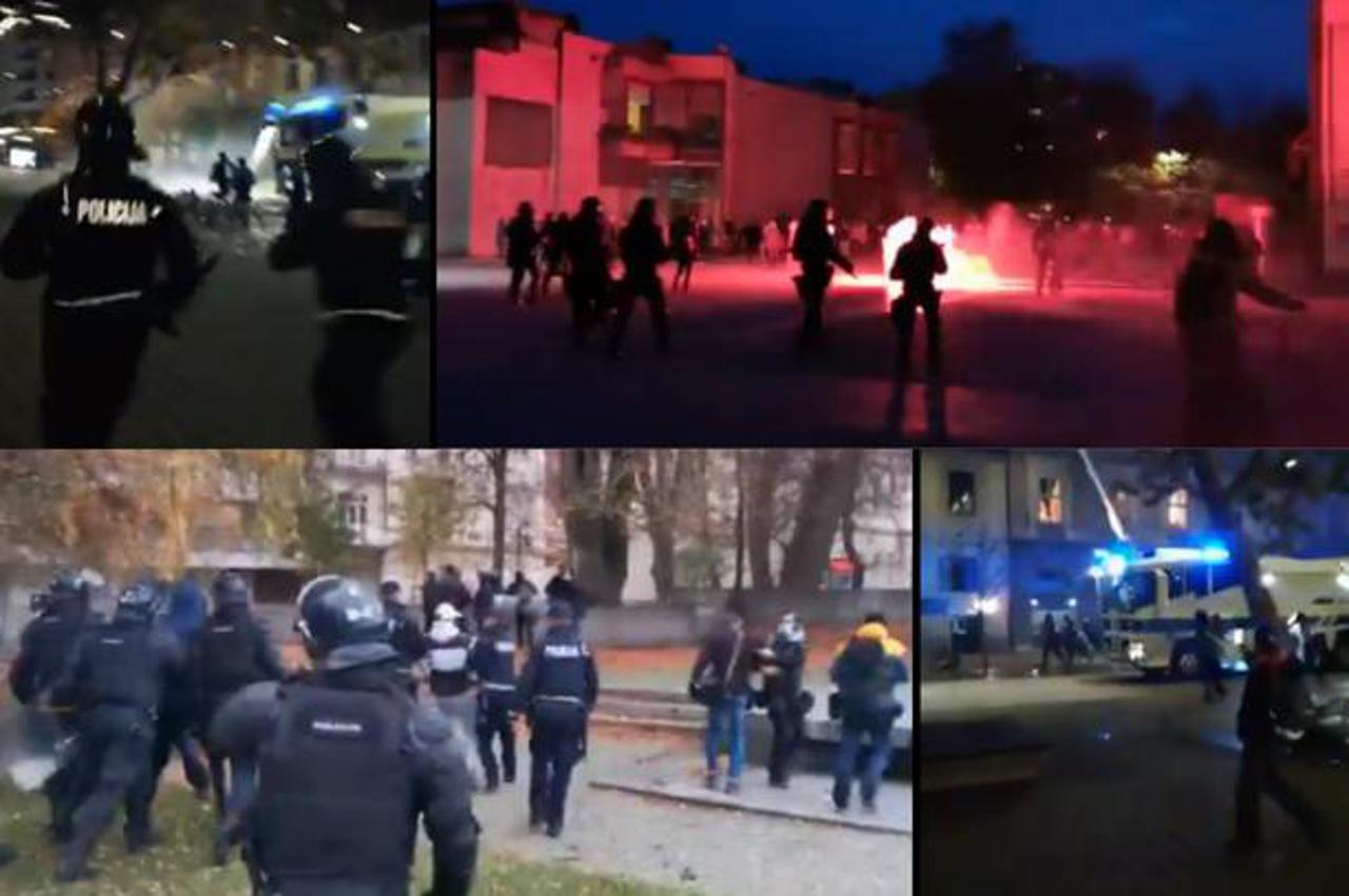 SUKOB POLICIJE I PROSVJEDNIKA Neredi u Ljubljani: Letjele baklje, boce i granitne kocke, policija upotrijebila vodene topove Policija je na to na demonstrante djelovala vodenim topom, a iznad se pojavio i policijski helikopter