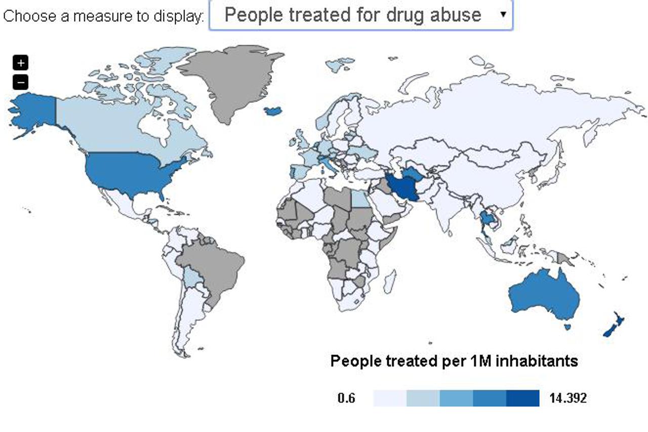 Karta opijata Najzastupljeniji tip narkotika u BiH je opijum, koristi ga 90 posto ovisnika Prema objavljenim kartama, u BiH je na milijun stanovnika 770 liječenih ovisnika što i nije tako loš prosjek ako se uzme u obzir stanje u cijeloj Europi