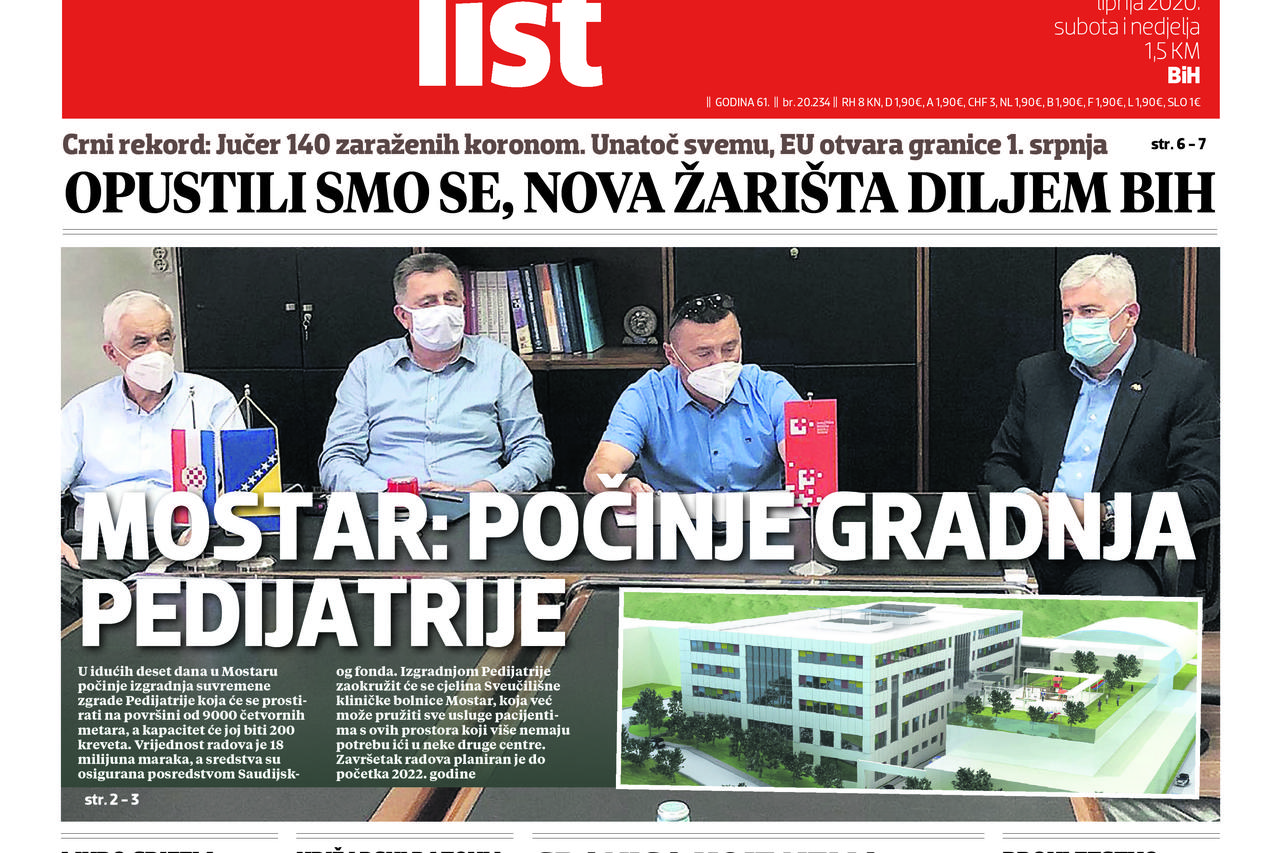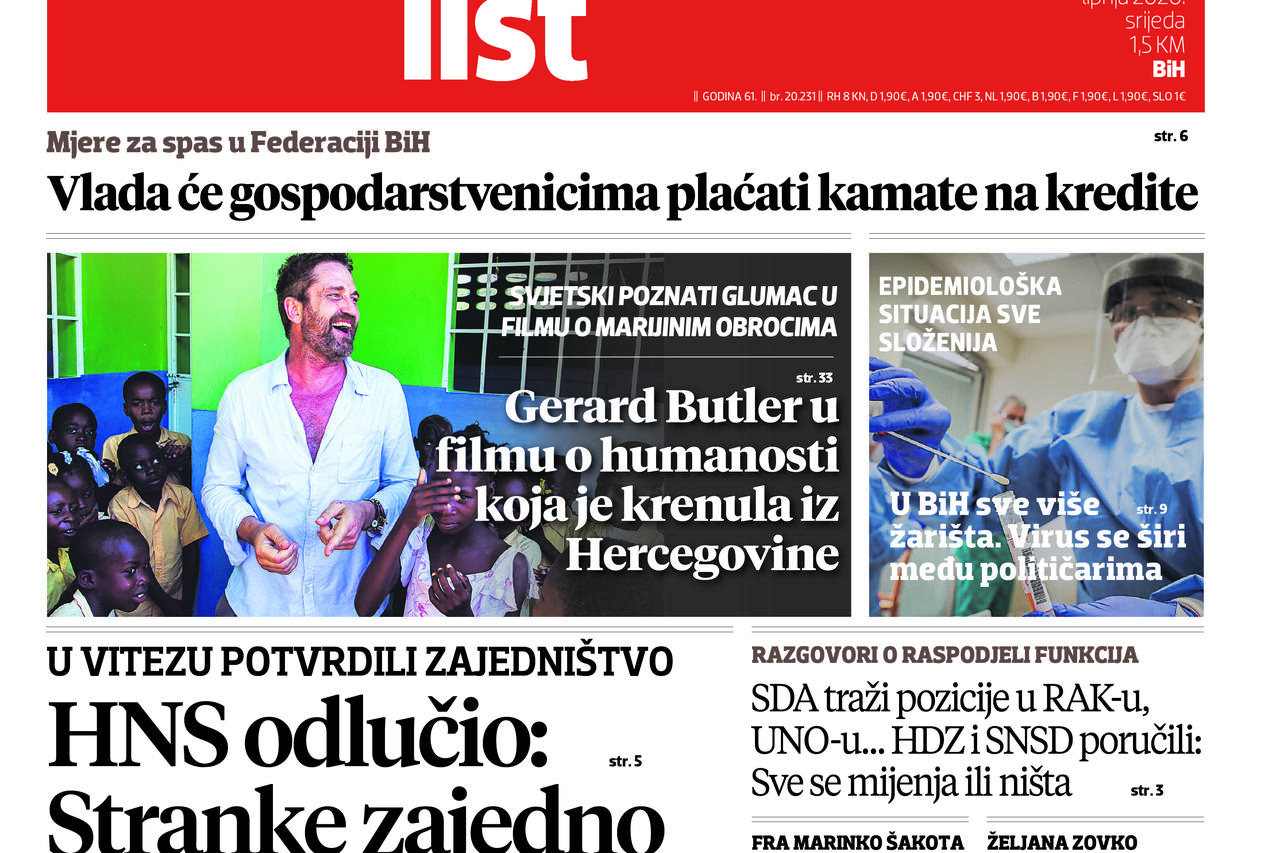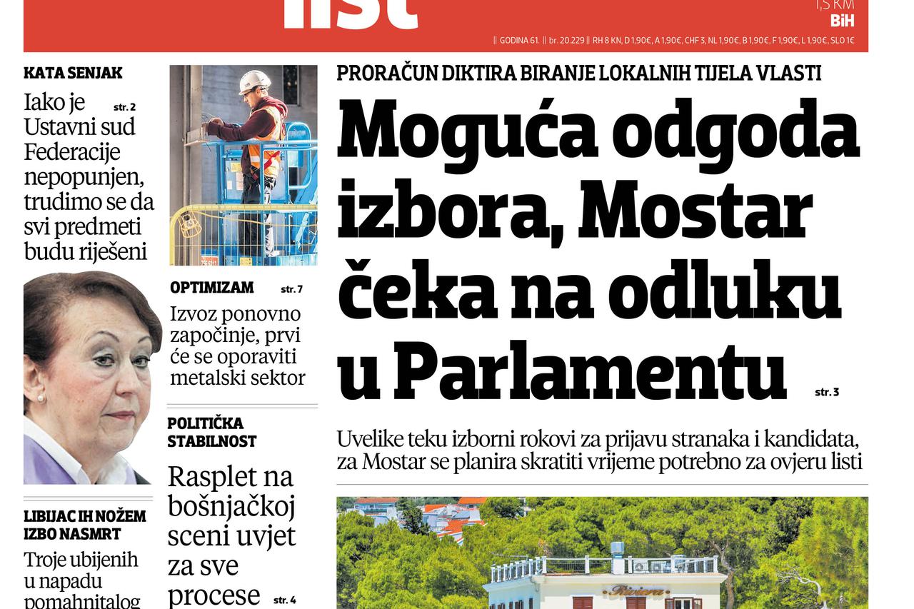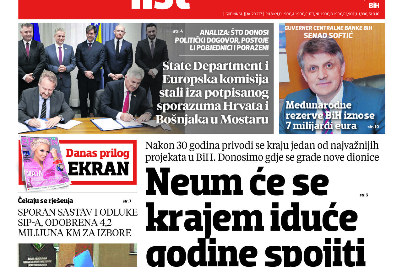 Pročitajte što vam ove srijede donosi Večernji list BiH