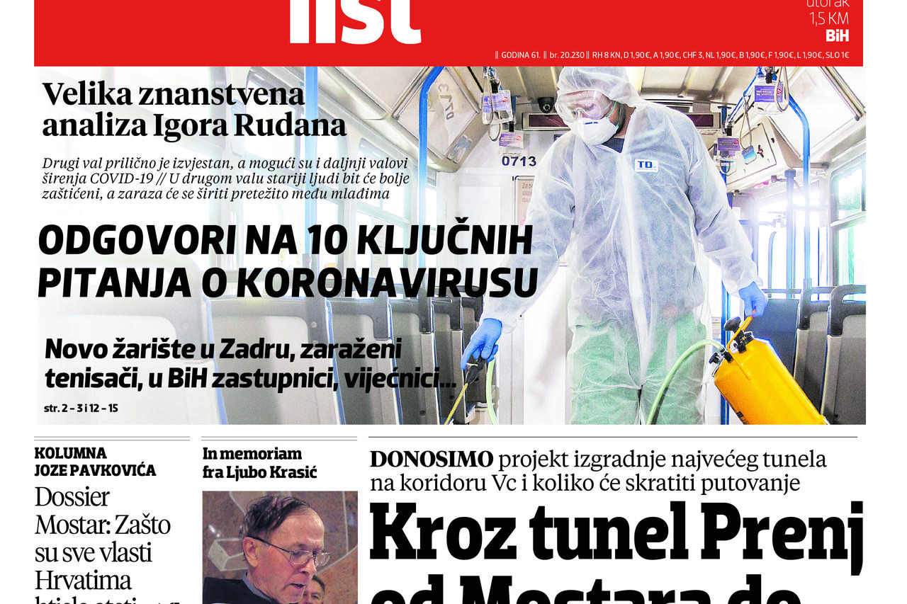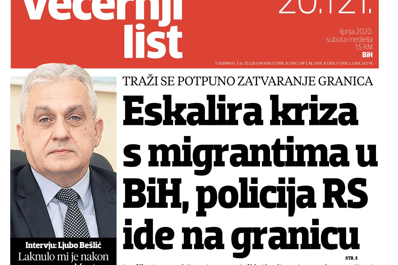Pročitajte što vam ovog utorka donosi Večernji list BiH