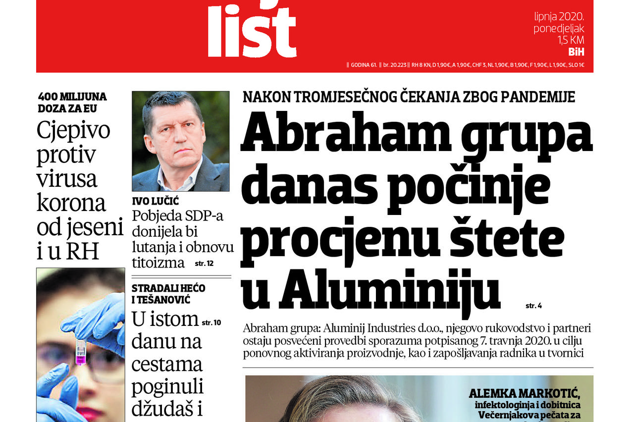 Pročitajte što vam ovog ponedjeljka donosi Večernji list BiH