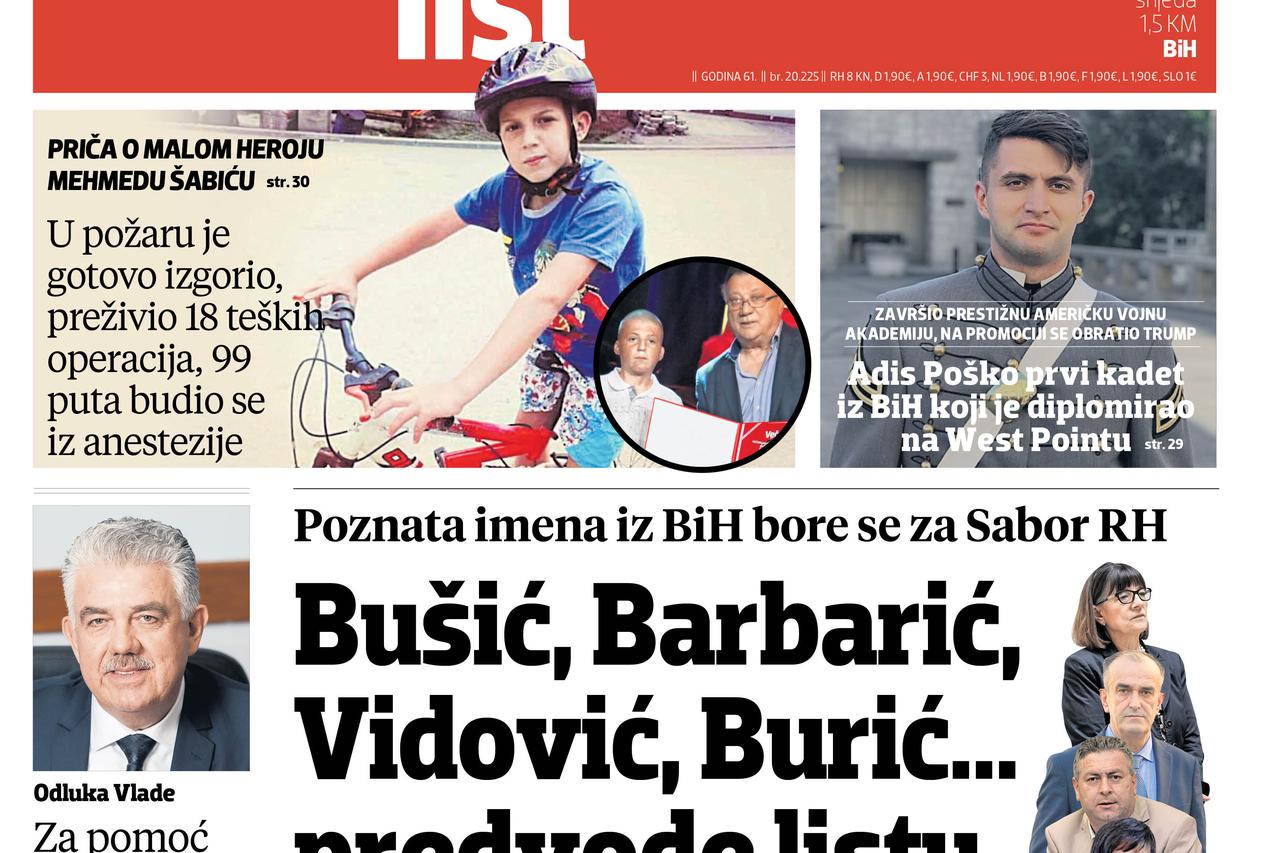 Pročitajte što vam ovog petka donosi Večernji list BiH
