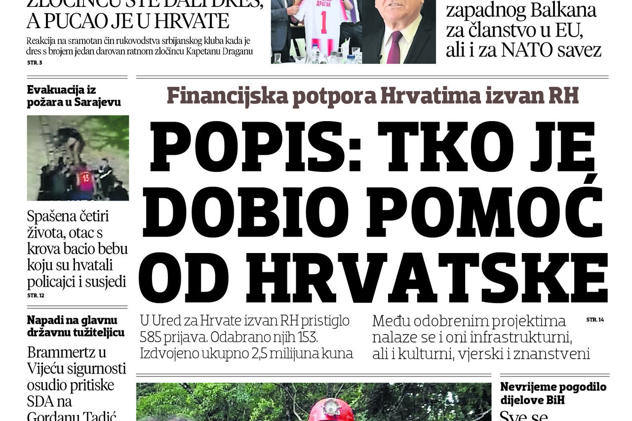 Pročitajte što vam ove srijede donosi Večernji list BiH