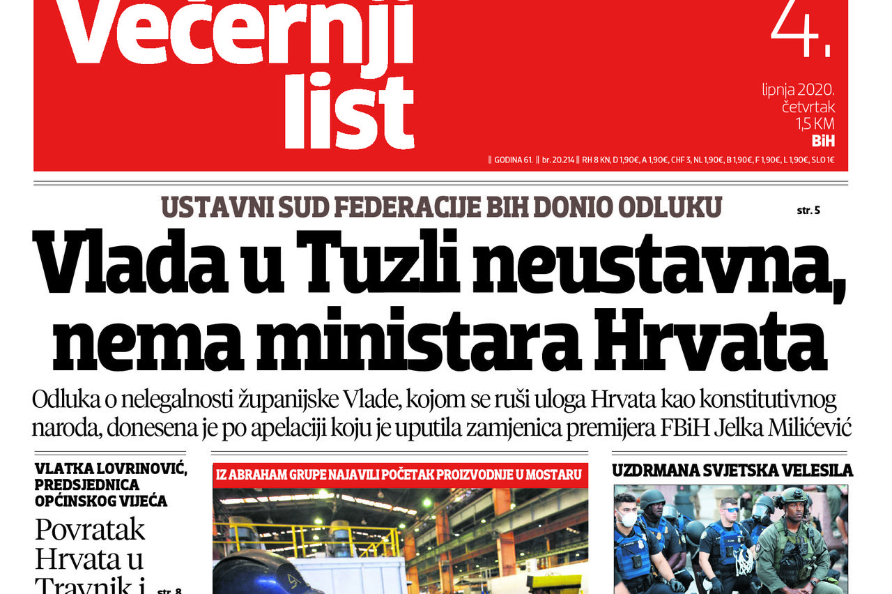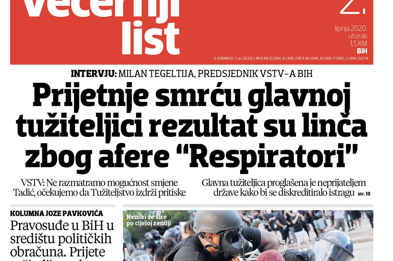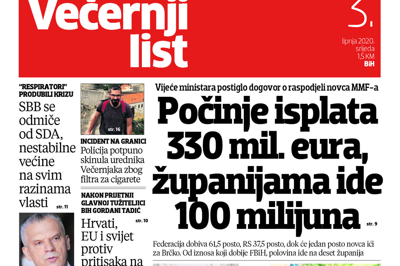 Pročitajte što vam ovog utorka donosi Večernji list BiH