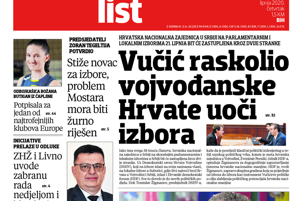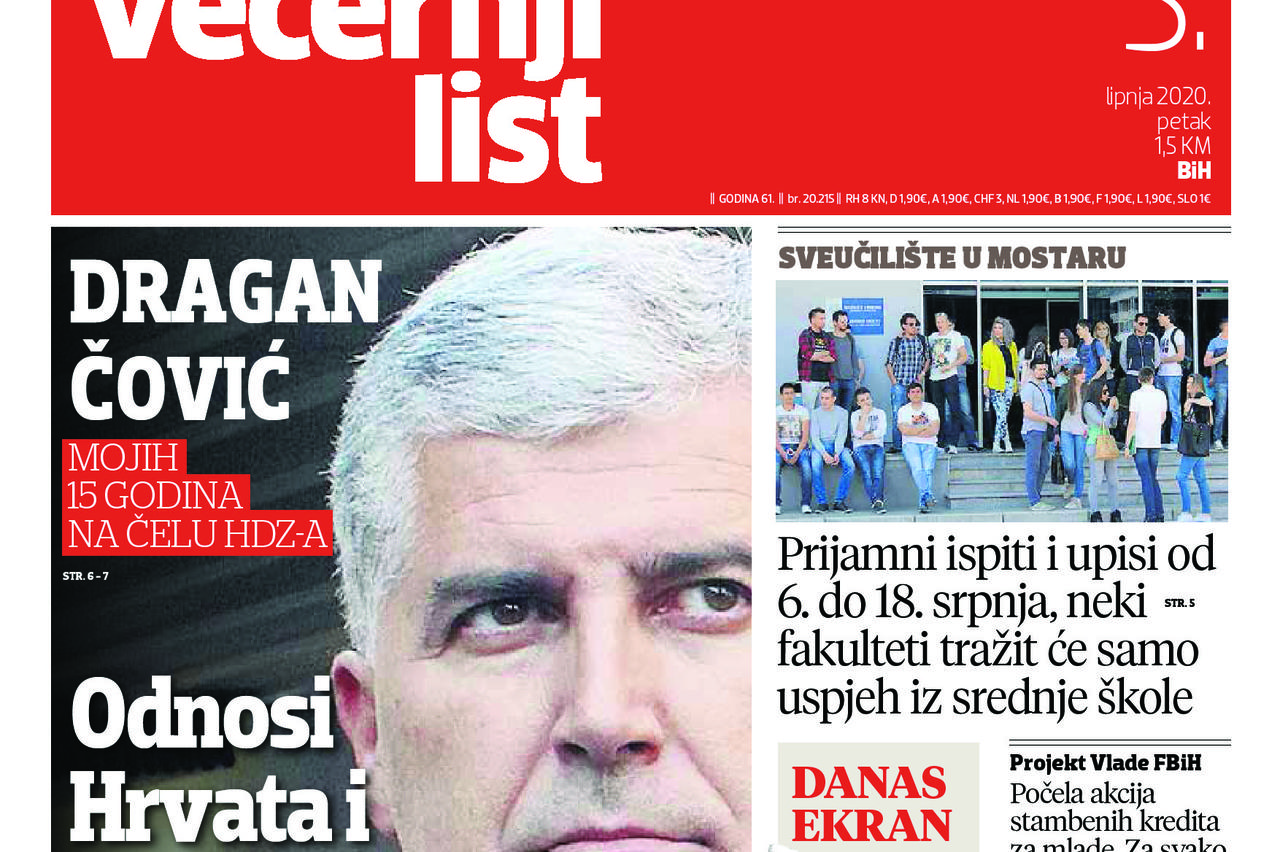 Pročitajte što vam ovog petka donosi Večernji list BiH