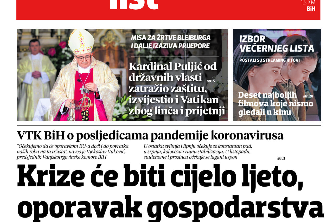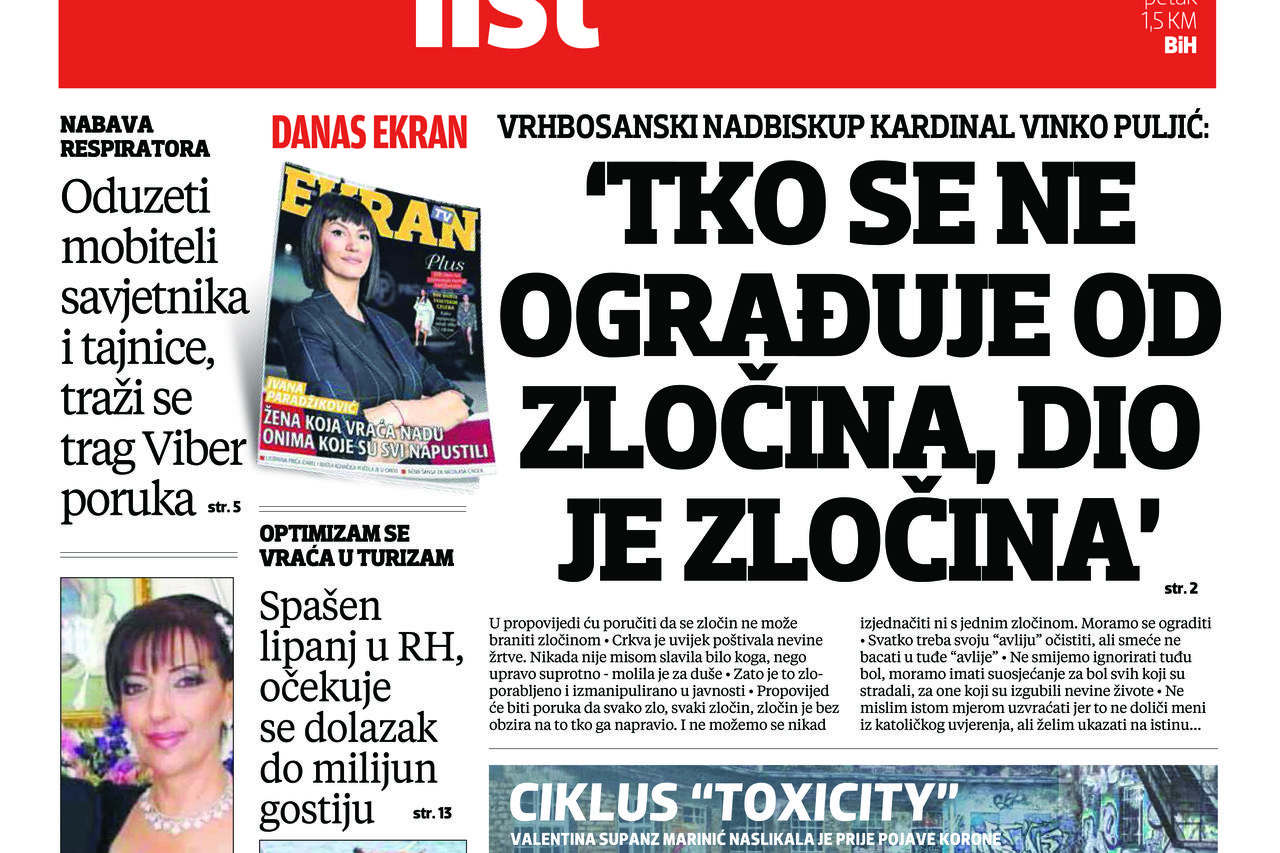 večernjak, 15. svibnja U Večernjem listu čitajte: Kardinal Puljić: "Tko se ne ograđuje od zločina, dio je zločina"