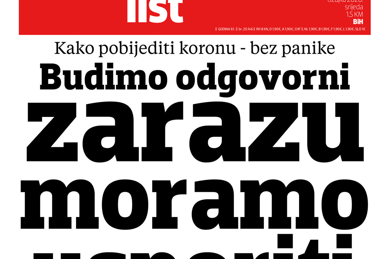 U Večernjem listu čitajte: Budimo odgovorni zarazu moramo usporiti