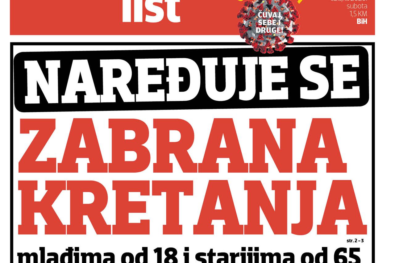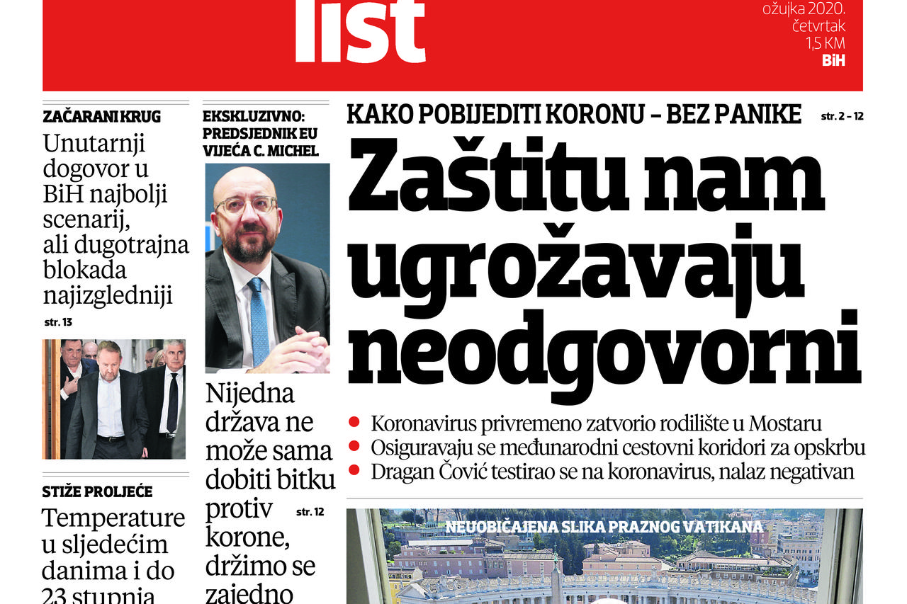 Pročitajte što vam ovog petka donosi Večernji list BiH