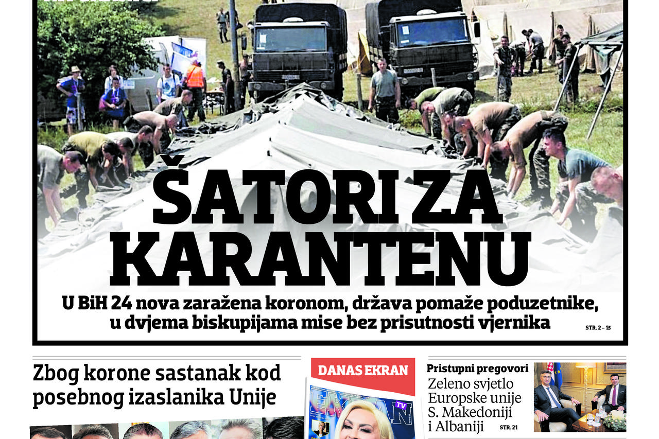 Pročitajte što vam ove srijede donosi Večernji list BiH