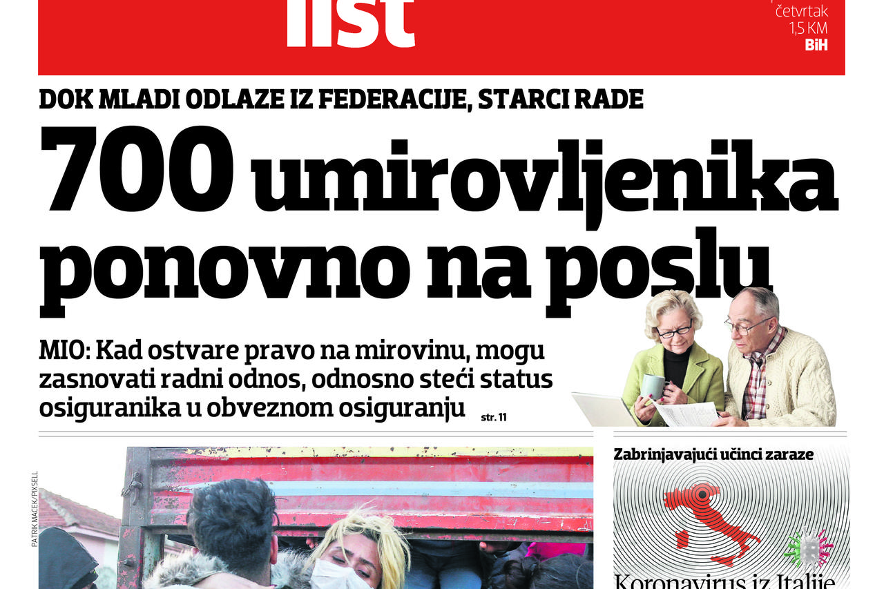 večernjak, 22. veljače U Večernjem listu čitajte: Do 2060. godine BiH će "uvesti" čak milijun stanovnika