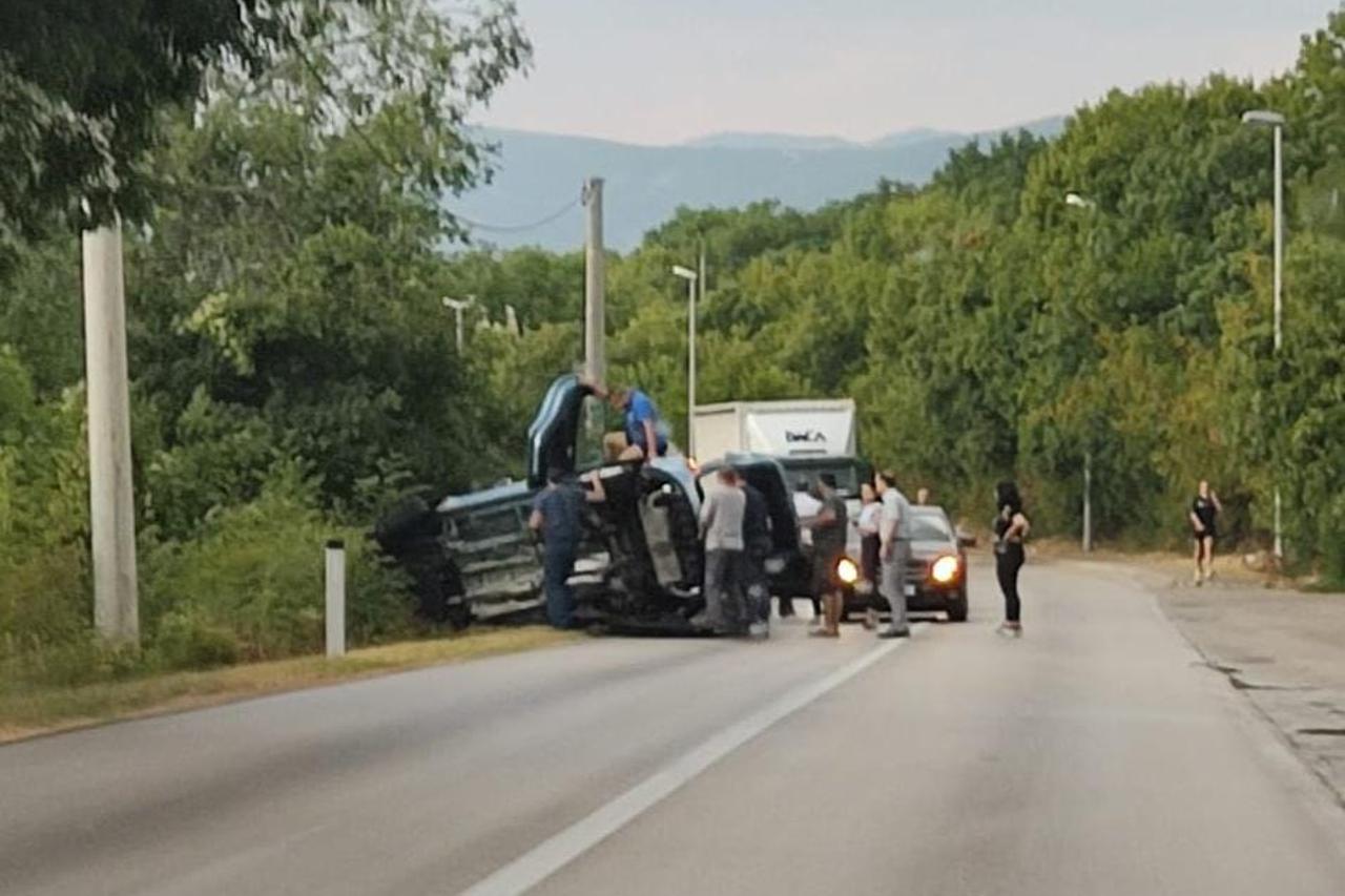 prometna nesreća Teži sudar dva vozila između Mostara i Širokog Brijega Oba su sletjela s ceste, a jedno je vozilo od siline udara završilo na krovu.