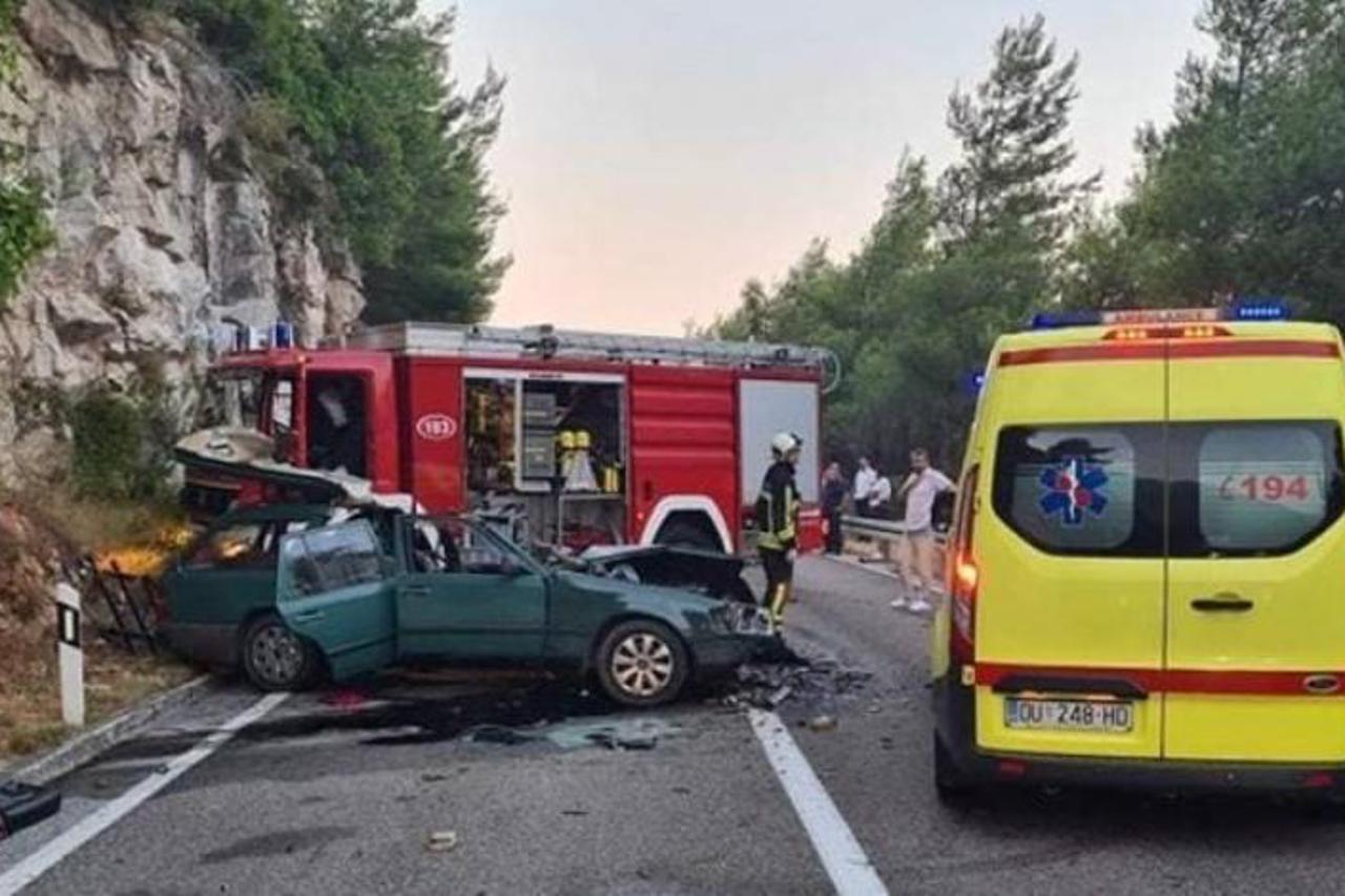 na predjelu Veliki žali kod Trstenog Teška nesreća na Jadranskoj magistrali: Poginula jedna osoba, ozlijeđene spašavali vatrogasci