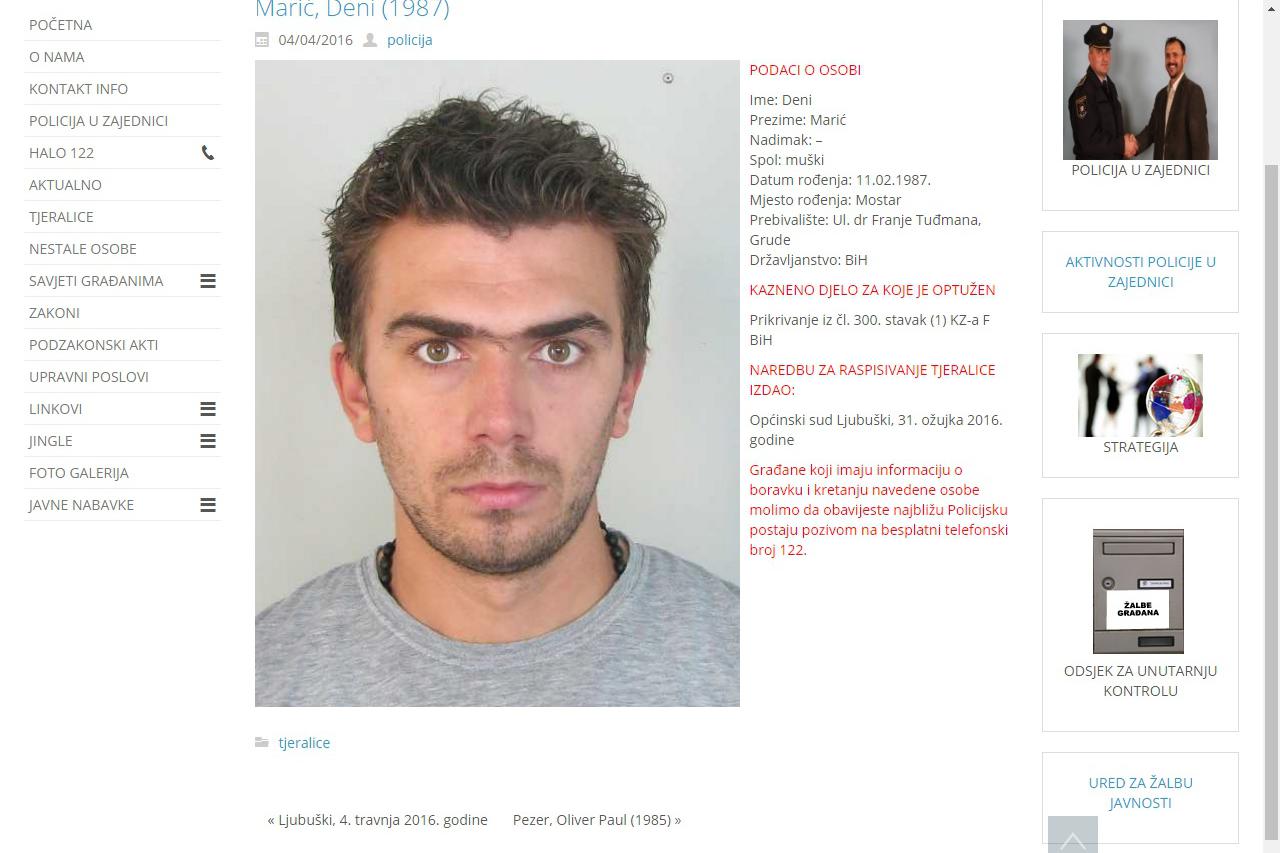 Policija objavila tjeralice za Denijem Marićem i Oliverom P. Pezerom