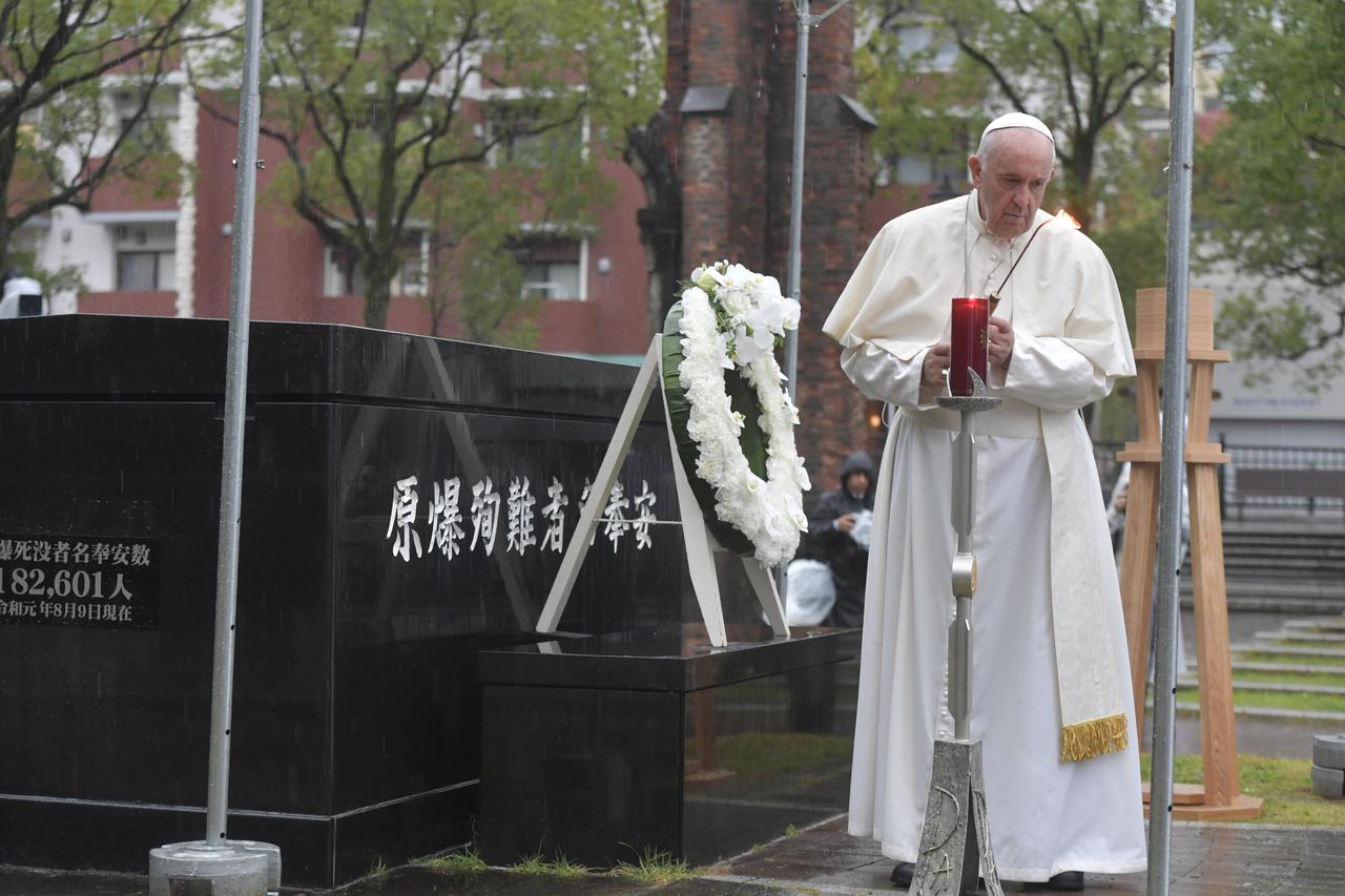 poruka u Nagasakiju Papa: Posjedovanje nuklearnog oružja je izopačeno i neodrživo "Posjedovanje nuklearnog i drugog oružja za masovno uništenje nije odgovor na čežnju za mirom", rekao je Franjo u poruci u Nagasakiju u Parku hipocentra atomske bombe