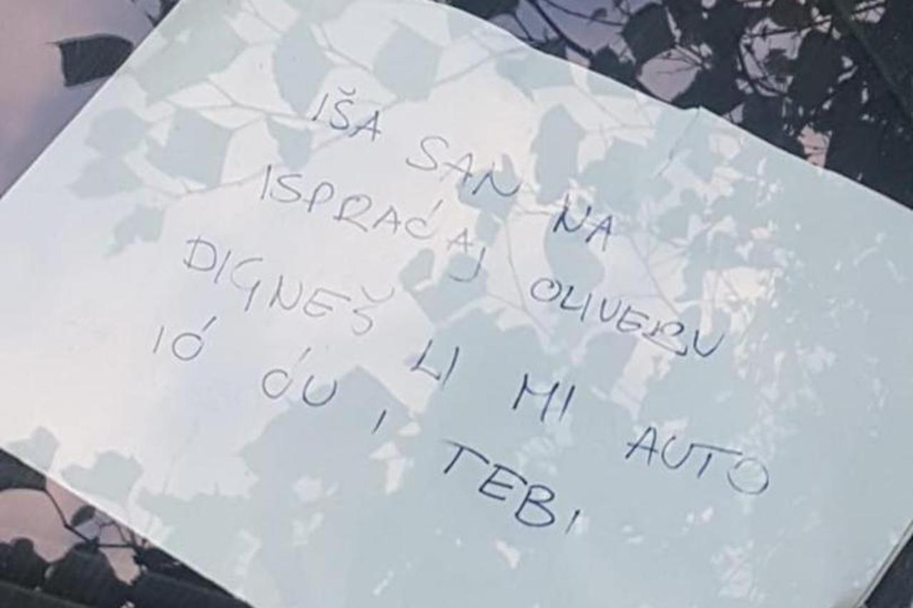 ISPRAĆAJ OLIVERA Dalmatinac na automobilu ostavio poruku koja je nasmijala sve Kako ne bi ostao bez vozila, jedan Splićanin je ostavio poruku pauk-službi jer se, sudeći prema sadržaju napisanog, očito nepropisno parkirao