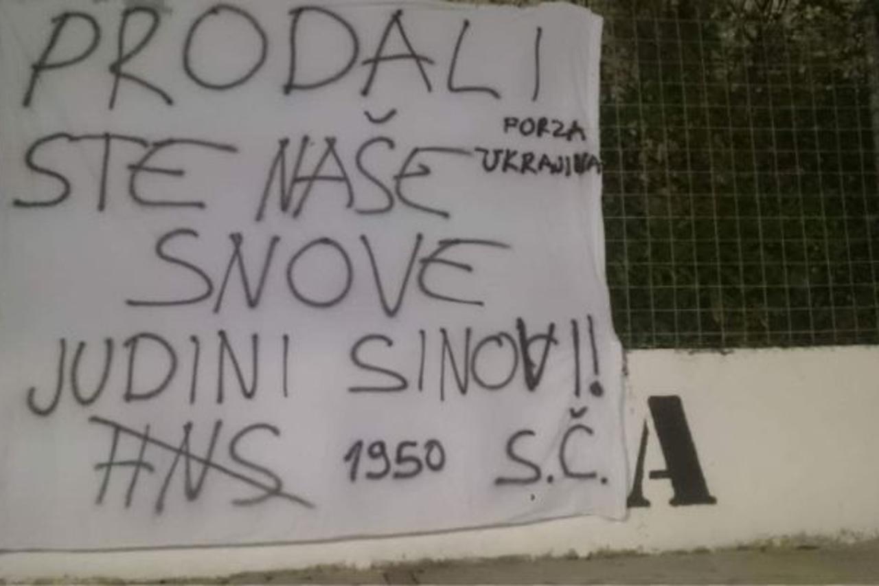 PORUKA U SPLITU Torcida navija za Ukrajinu: "Prodali ste naše snove, Judini sinovi! Večeras je u Splitu osvanula sramna poruka Torcide: "Prodali ste naše snove, Judini sinovi. Forza Ukrajina