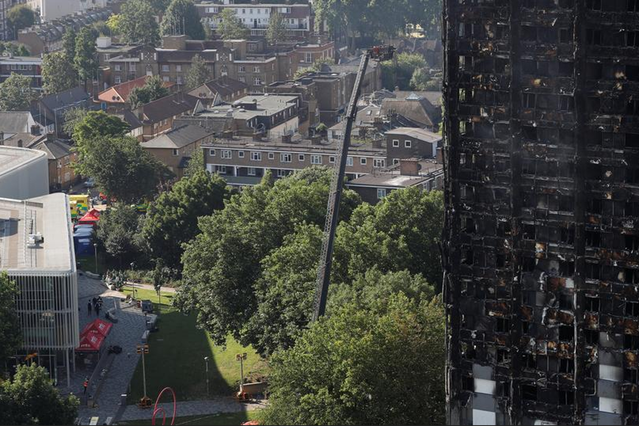 18 OSOBA KRITIČNO Vatrogasci zasad ne mogu temeljito pretražiti izgorjelu zgradu u Londonu Požar je gotovo u cijelosti zahvatio 24 kata visoku zgradu izgrađenu 1974. u londonskom predgrađu Sjeverni Kensington.