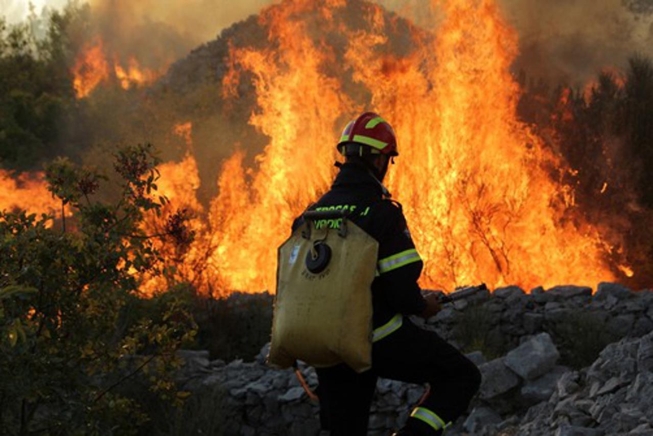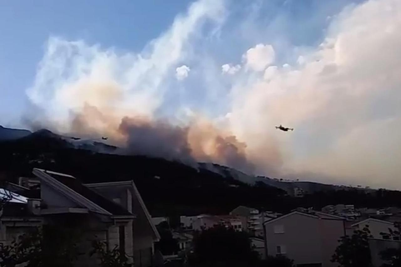 Video sadržaj BLOKIRANE CESTE Veliki požar kod Podgore gasi stotinjak vatrogasaca, evakuirani turisti i dio stanovnika Požar iznad magistrale izbio je u 2,25 sati, a odmah nakon dojave na teren je izišlo stotinjak vatrogasaca