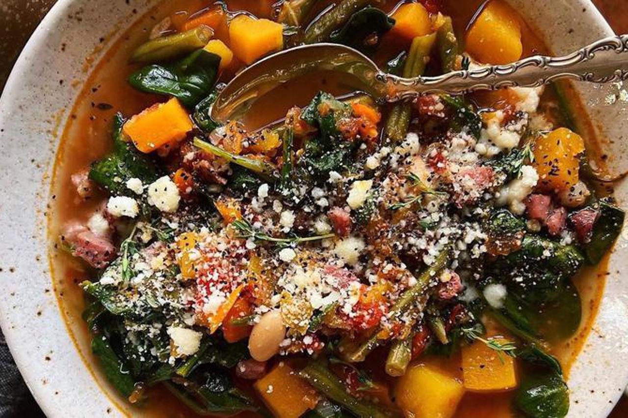 FINO, NA ŽLICU Zimski minestrone bogat povrćem Malo povrća, malo žitarica, začini, povrtni temeljac... i zimski minestrone je gotov! Donosimo recept za jelo koje savršeno prija u ovim hladnim danima