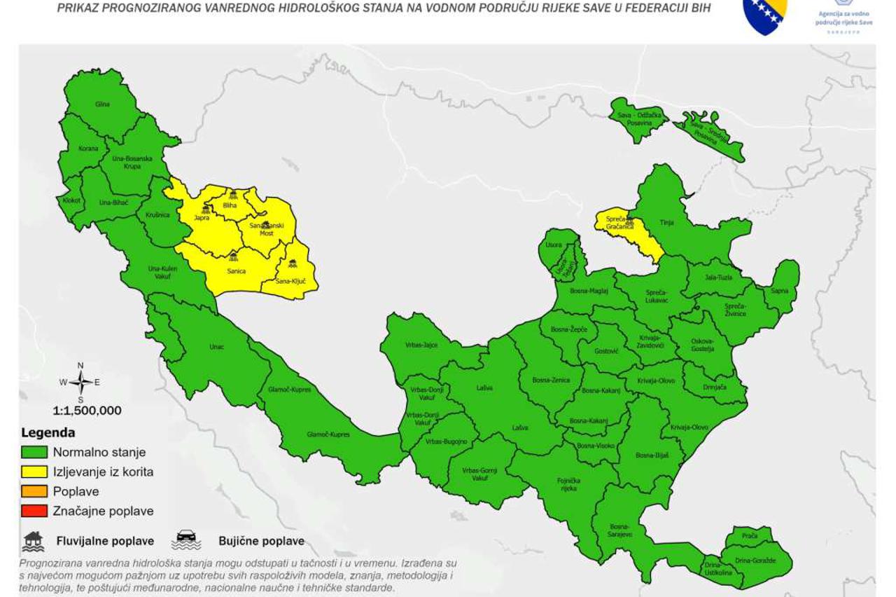 Agencija za vodno područje rijeke Save izdala je obavijest o prognozi izvanrednog hidrološkog stanja za razdoblje od 8. do 11. siječnja