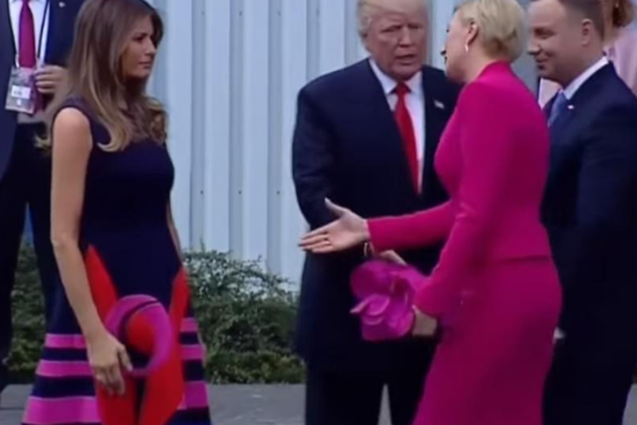 Video sadržaj NESRETNO RUKOVANJE Pogledajte kako je prva dama Poljske ignorirala Trumpa Trump je, držeći ruku u zraku, pogledom pratio Agatu koja se kasnije okrenula prema njemu i dala mu ruku.