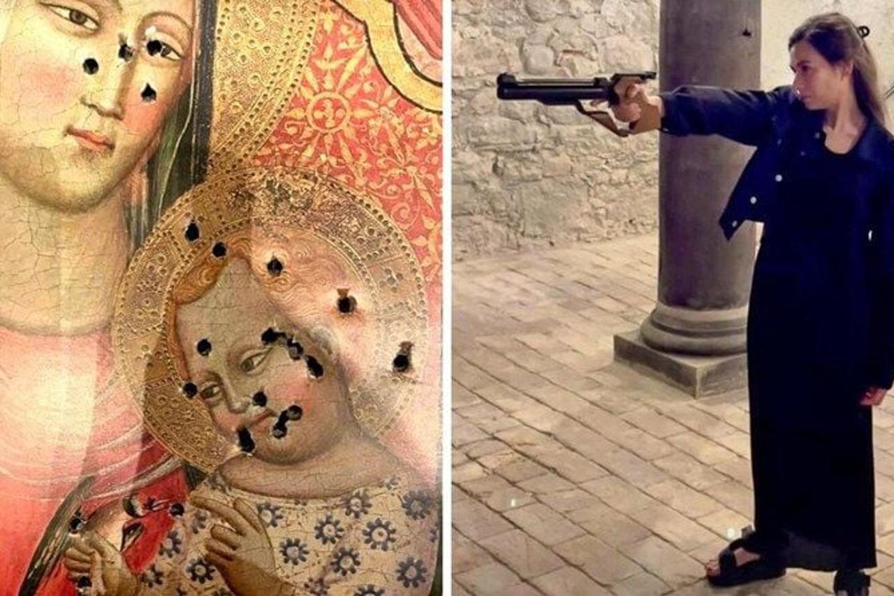 POD POLICIJSKOM ZAŠTITOM Evo tko je kontroverzna švicarska političarka, podrijetlom iz BiH koja je iz pištolja izrešetala sliku Djevice Marije i Isusa Krista Prva slika pokazuje političarku kako pištoljem gađa u metu, uz prateći tekst “Isključiti”. Na drugoj se slici vidi meta: slika Majke Božje i malog Isusa