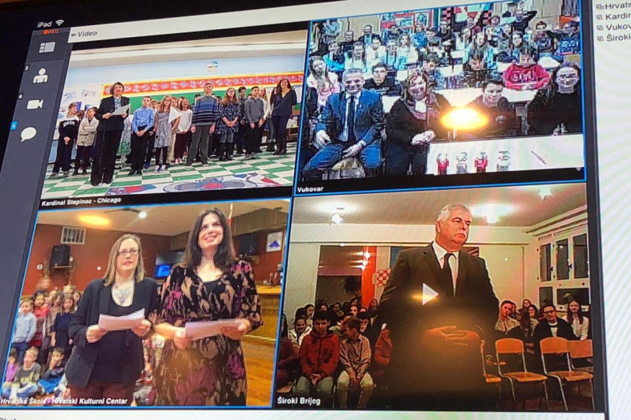 pilot projekt "Korijeni" Videokonferencijom povezane škole u Širokom Brijegu, Vukovaru i Chicagu Iz Širokog Brijega naglasili su da je "najvažnije zajedništvo našeg naroda, ma gdje bili, jer nas veže jedna ljubav prema istoj domovini Hrvatskoj"