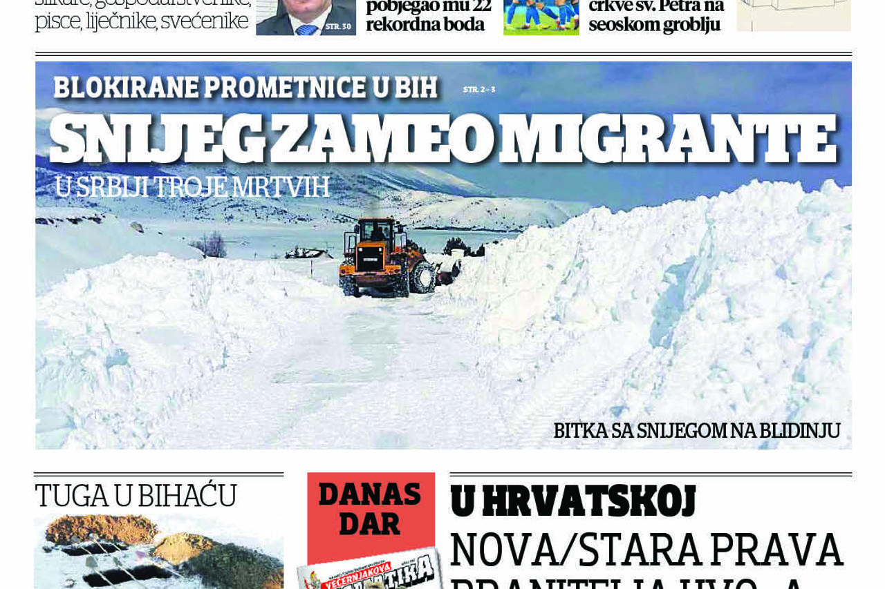 Pročitajte što vam donosi u ponedjeljak tiskano izdanje Večernjeg lista BiH