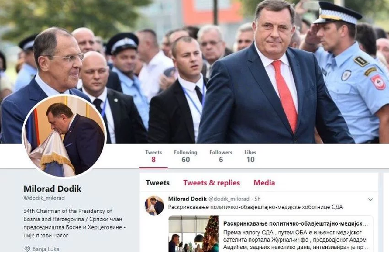 nastao jučer SNSD upozorio na lažni profil Milorada Dodika na Twitteru "Obavještavamo javnost da ovo nije nalog Milorada Dodika. Milorad Dodik nema naloge na društvenim mrežama", napisali su iz SNSD-a