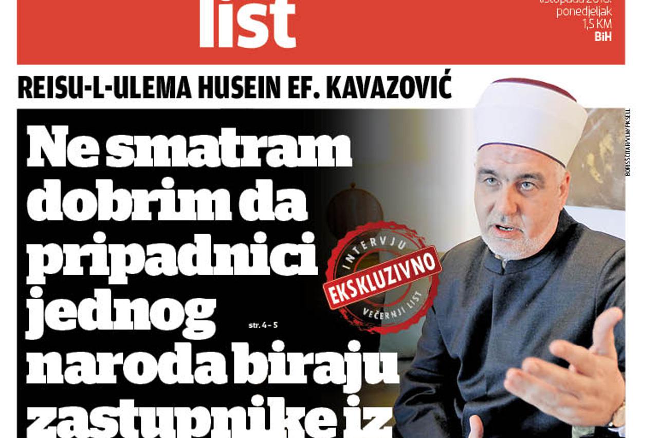 večernjak, 1. listopada Donosimo: Reis kavazović: Ne smatram dobrim da pripadnici jednog naroda biraju zastupnike iz drugog naroda