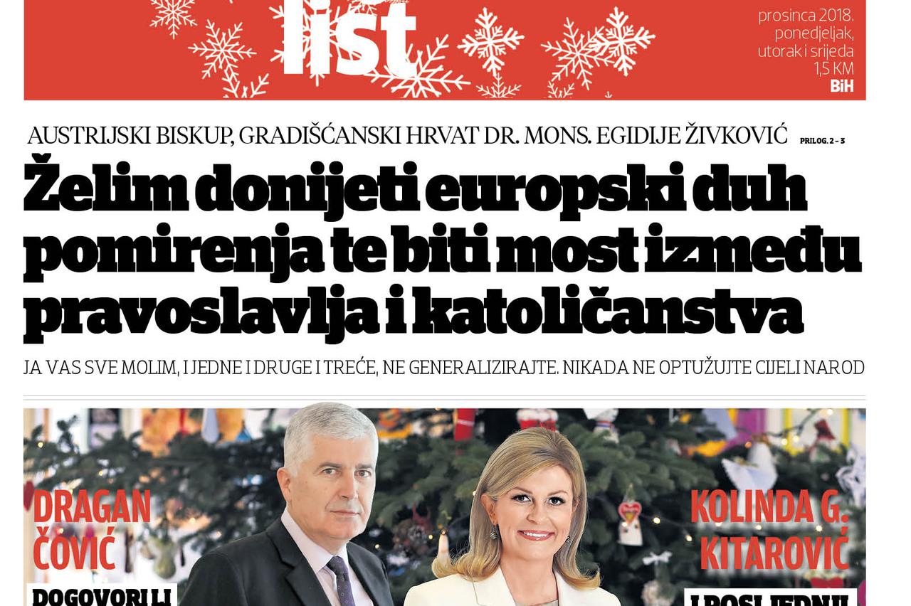 večernjak, 23. prosinca U Večernjem listu ove nedjelje čitajte: Zakonom zaustaviti lažne Hrvate u BiH