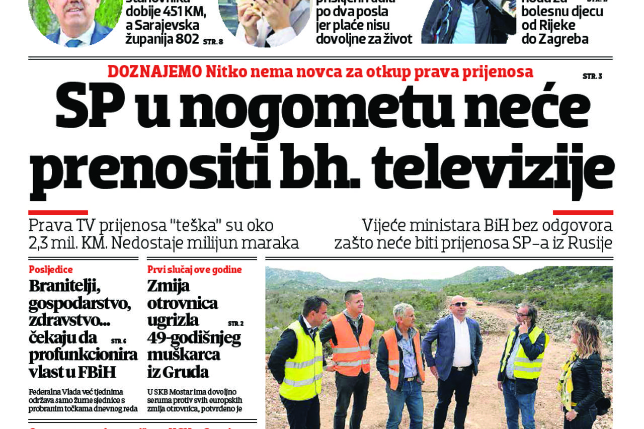 naslovnica, 5. travnja Donosimo: Gledatelji u BiH ostaju bez Svjetskog prvenstva u Rusiji, BHRT-u nedostaje milijun KM
