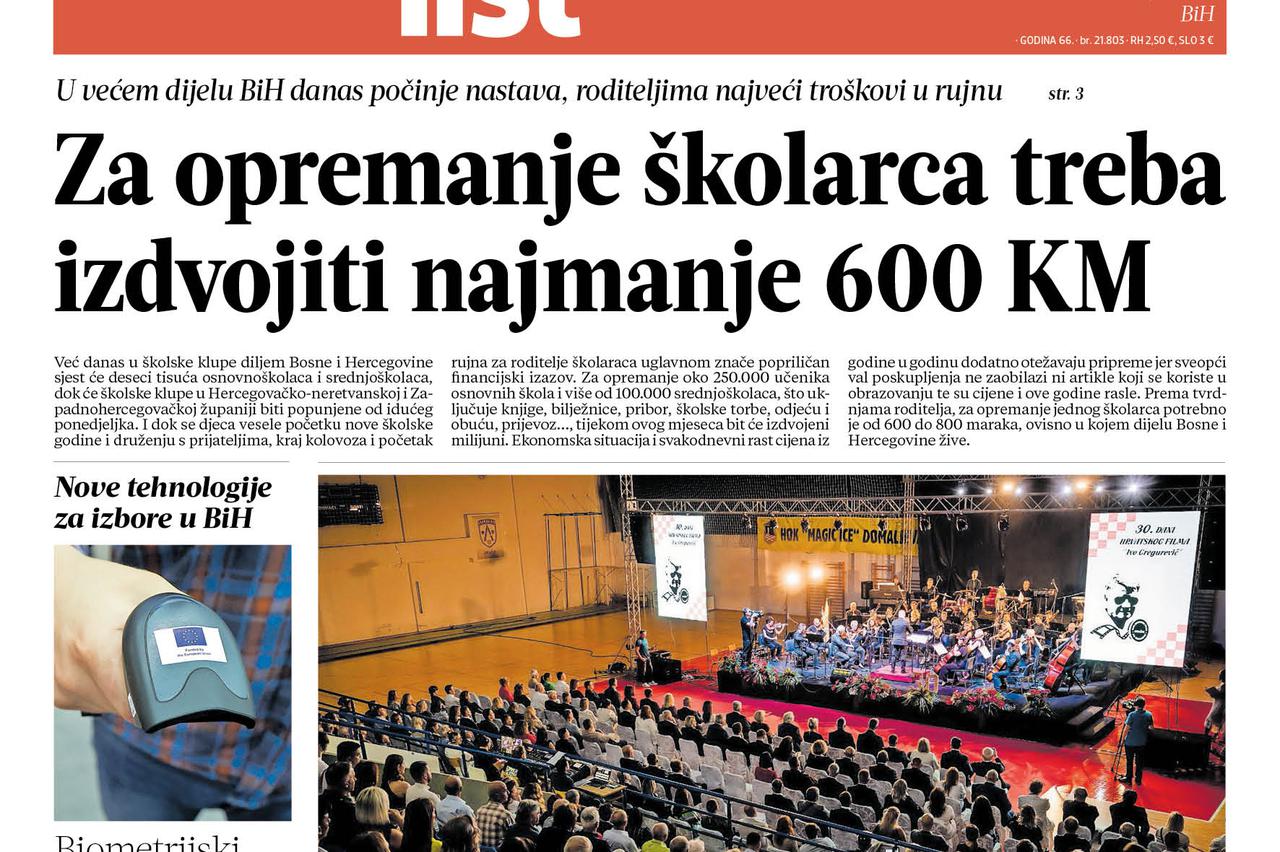 Večernjak, 15. rujna Pročitajte što vam ovog ponedjeljka donosi Večernji list BiH U Večernjem listu BiH u tiskanom izdanju u ponedjeljak, 15. rujna 2025. godine pročitajte