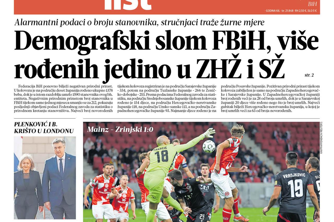 večernjak, 30. listopada Pročitajte što vam ovoga četvrtka donosi Večernji list BiH U Večernjem listu BiH u tiskanom izdanju u četvrtak, 30. listopada 2025. godine pročitajte: