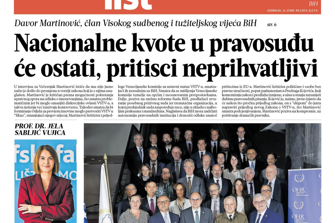 večernjak, 15. prosinca Pročitajte što vam ovog ponedjeljka donosi Večernji list BiH U Večernjem listu BiH u tiskanom izdanju u ponedjeljak, 15. prosinca 2025. godine pročitajte:
