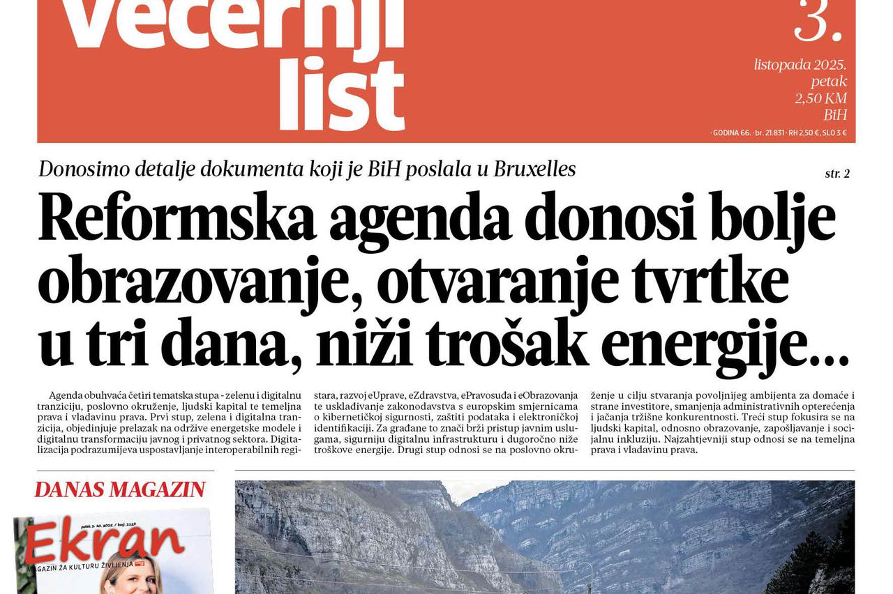 večernjak, 3. listopada Pročitajte što vam ovog petka donosi Večernji list BiH U Večernjem listu BiH u tiskanom izdanju u petak, 3. listopada 2025. godine pročitajte: