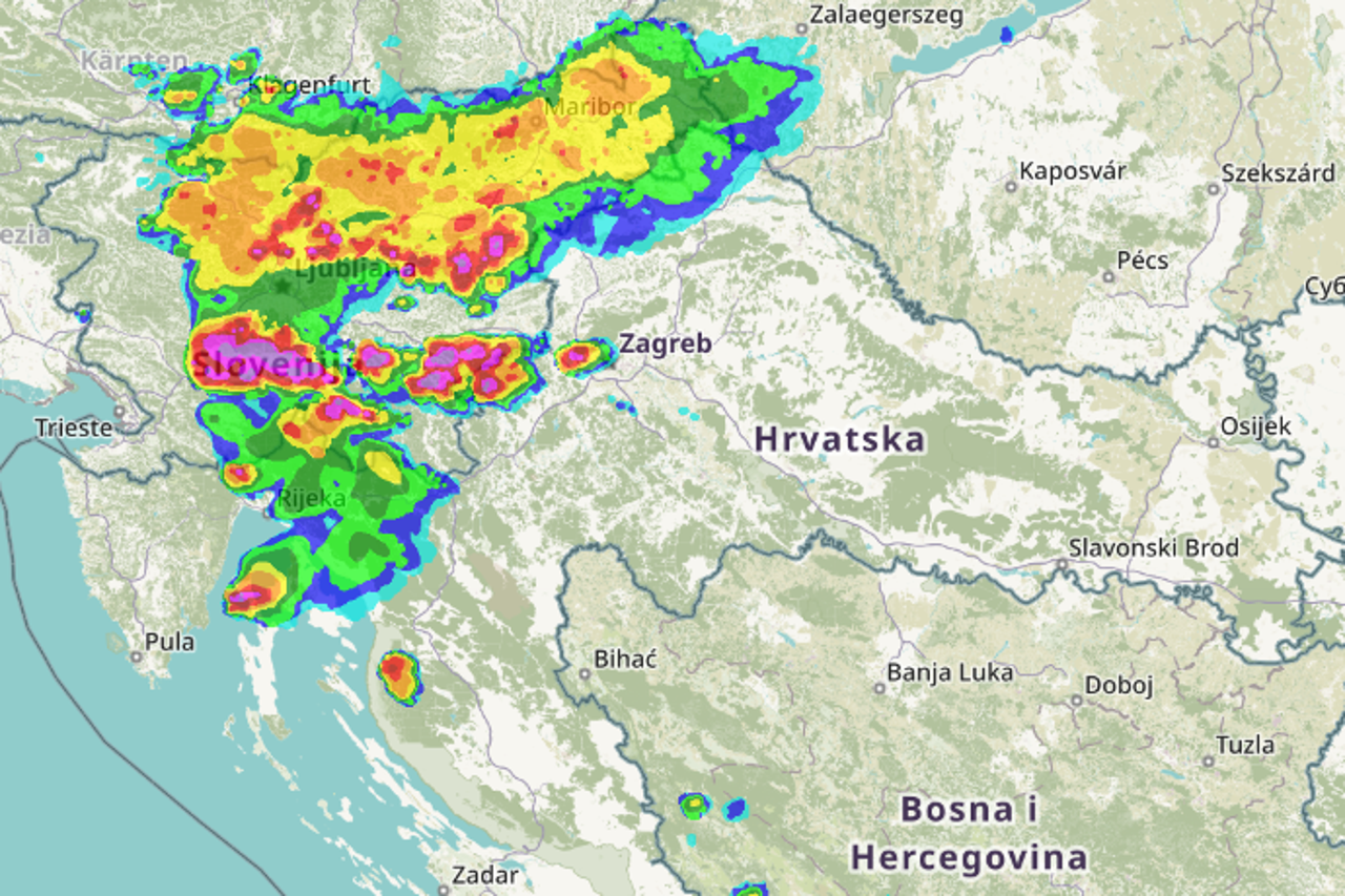Nagla promjena Sa zapada u Hrvatsku dolazi nevrijeme, očekuju se pljuskovi i grmljavina Unatoč postupnom prodoru nestabilnijeg zraka, vrućina ne jenjava. Najviše dnevne temperature kreću se između 32 i 36 °C, u dijelovima Dalmacije i do 38 °C.