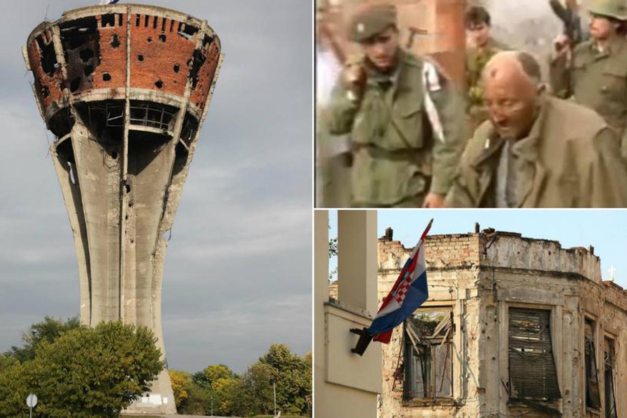 Ova se fotografija iz Vukovara izdvaja više od drugih: Pogrbljeni muškarac hoda sa štapom, četvorica ga drže na nišanu