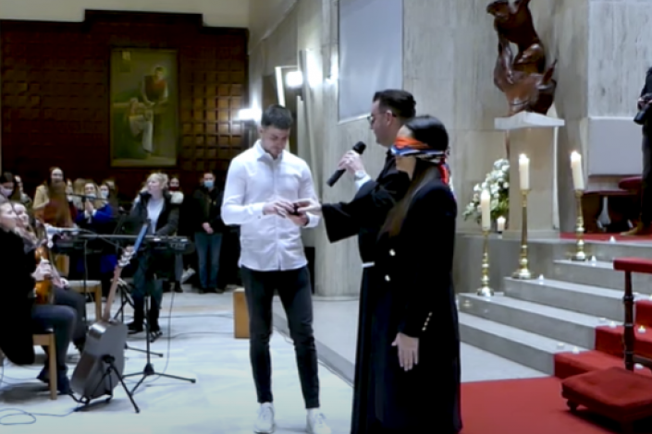 (VIDEO) Prekrasna prosidba pred punom crkvom, pomogao i svećenik