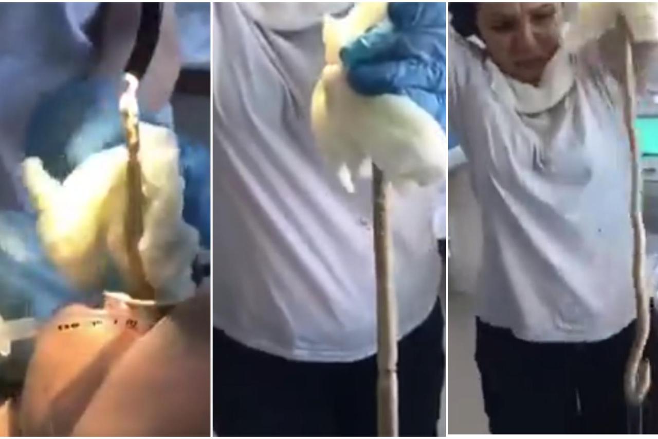 SNIMKA OBIŠLA SVIJET UZNEMIRUJUĆE Djevojka se požalila na strašne bolove, liječnici joj u trbuhu našli zmiju Iz snimke se ne može pouzdano razaznati o kojoj je vrsti zmije riječ, dok je Ministarstvo zdravlja u Rusiji odbilo komentirati slučaj za europske medije.