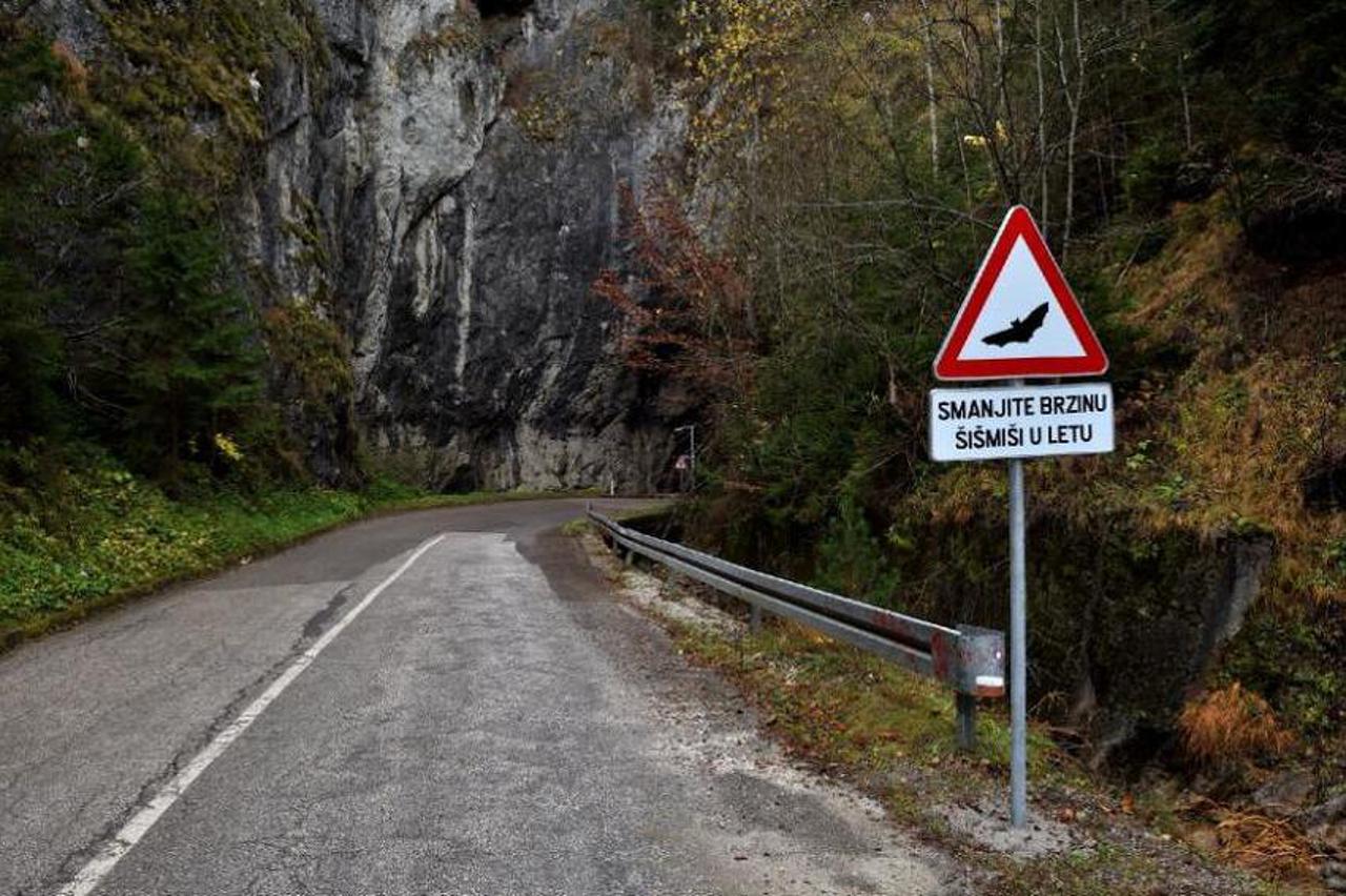 "To je prvi takav znak u svijetu (koliko znamo postoje za divljač općenito, divlje svinje, kengure, losove). Dozvolu za postavljanje znaka odobrila je Direkcija za ceste Zeničko-dobojske županije. Znak je postavljen s obje strane ulaza u pećinu/tunel Ponikva na regionalnoj cesti koja iz Vareša vodi preko planine Zvijezde u dolinu Krivaje. Ova pećina je jedna od pet pećina u svijetu kroz koje cijelom dužinom prolazi prometnica", priopćeno je iz Centra za krš i speleologiju Sarajevo, prenosi Radio Sarajevo.
